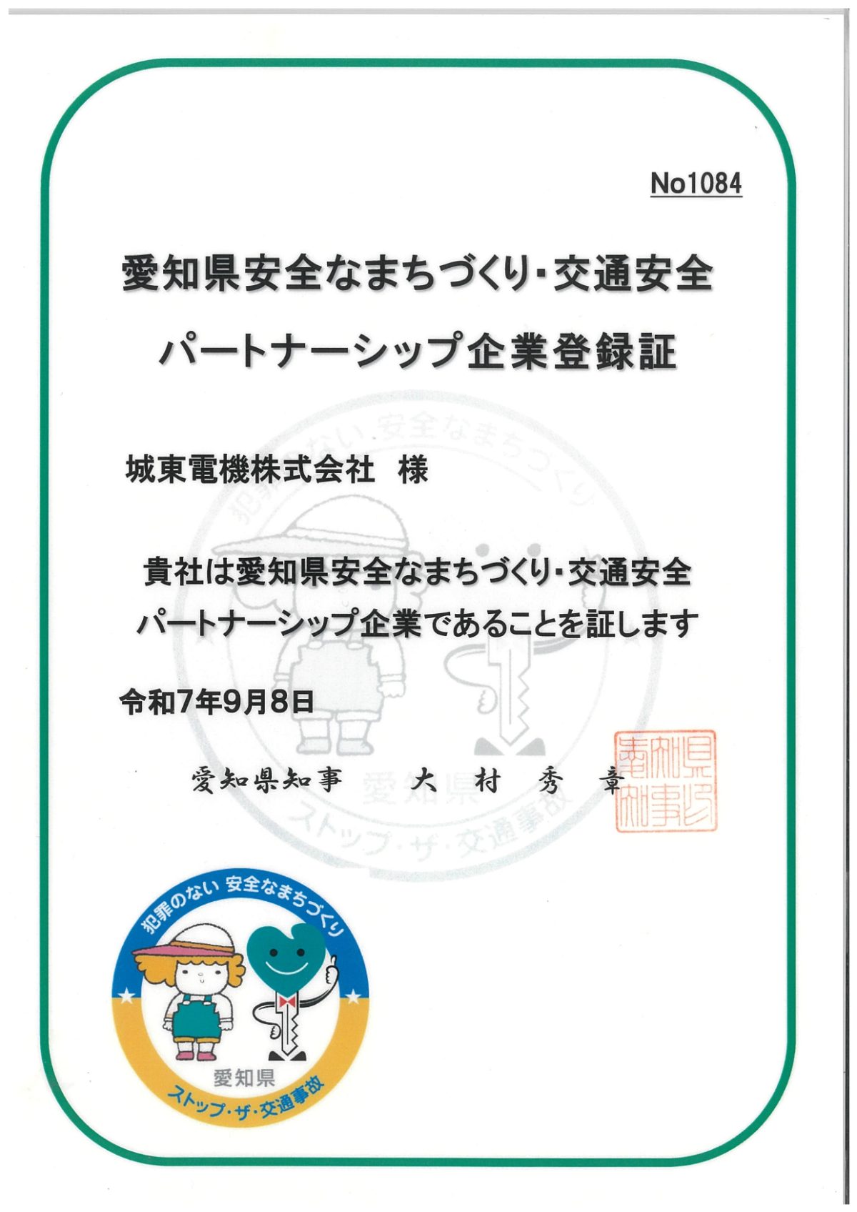 そこで当社は、愛知県安全なまちづくり・交通安全パートナーシップに登録しました。